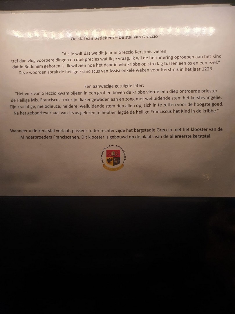 Het fenomeen ‘Kerststal’ bestaat nu 800 jaar toen St. Franciscus de eerste kerststal liet bouwen in Greccio als herinnering aan het Kind dat in Bethlehem was geboren, het verhaal dat niet alleen verteld moest worden, maar ook ervaren. Ik had het nog nooit eerder gezien, maar het is echt de moeite waard, zeker als je bedenkt met hoeveel vrijwilligers dit is opgezet met zoveel liefde en toewijding.